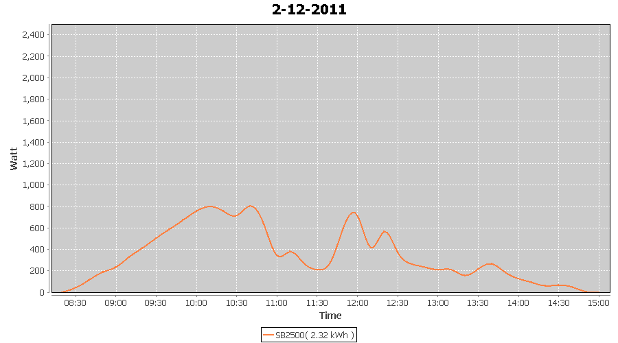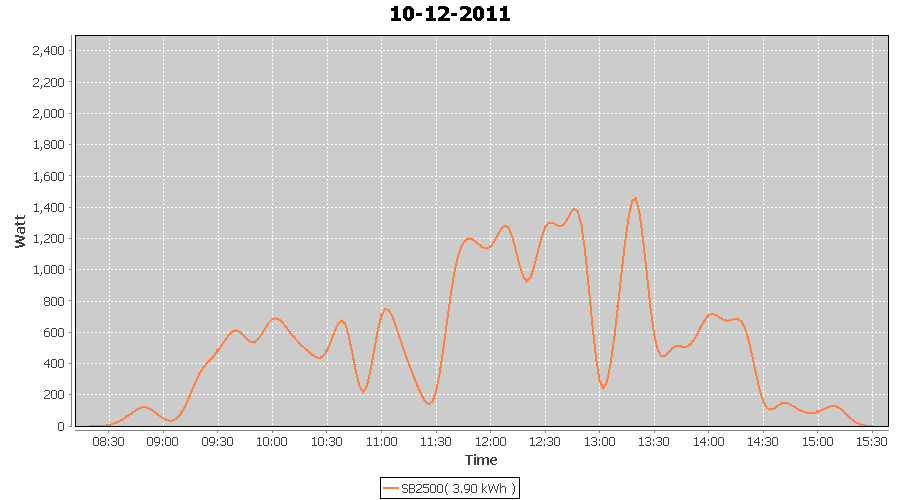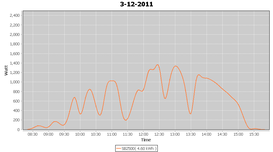 | 3-12-2011 | kWh | W/Wp | 4.61 | 2500 | 1.8 | 2.13 | £ 2.07 | 6.1 | |