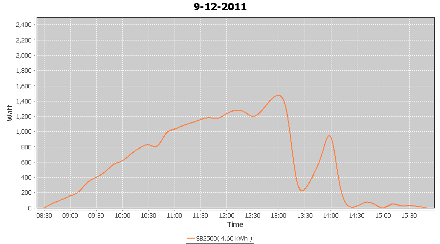 | 9-12-2011 | kWh | W/Wp | 4.61 | 2500 | 1.8 | 2.13 | £ 2.07 | 6.1 | |
