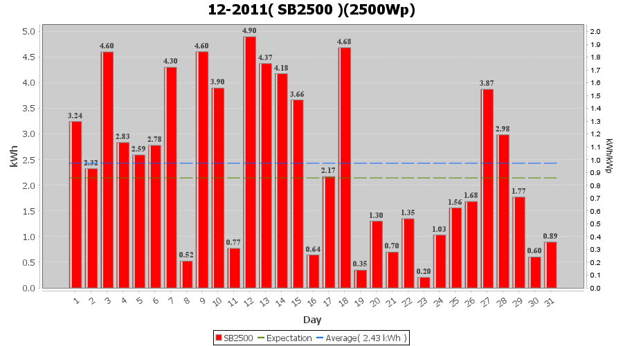 | 24-12-2011 | kWh | W/Wp | 1.03 | 2500 | 0.4 | 0.48 | £ 0.46 | 1.4 | |