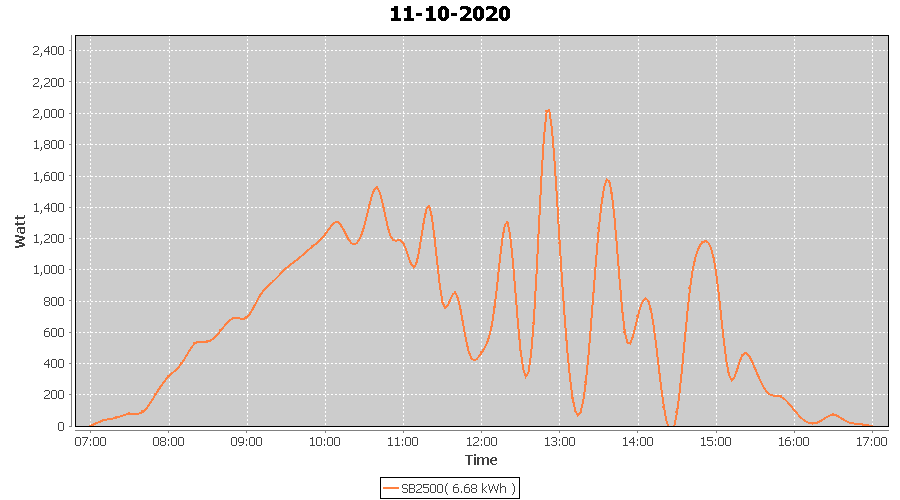 | 11-10-2020 | kWh | W/Wp | 6.68 | 2500 | 2.7 | 3.09 | £ 3.83 | 5.8 | |