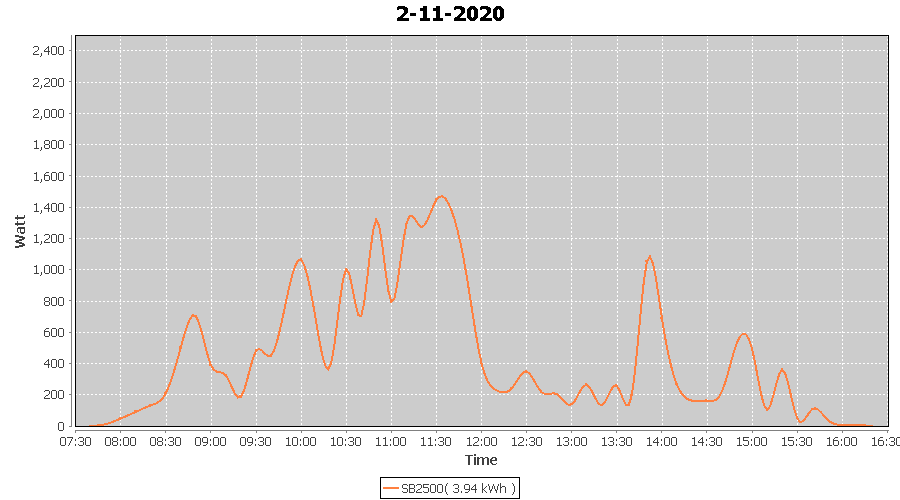 | 2-11-2020 | kWh | W/Wp | 3.94 | 2500 | 1.6 | 1.82 | £ 2.26 | 5.2 | |