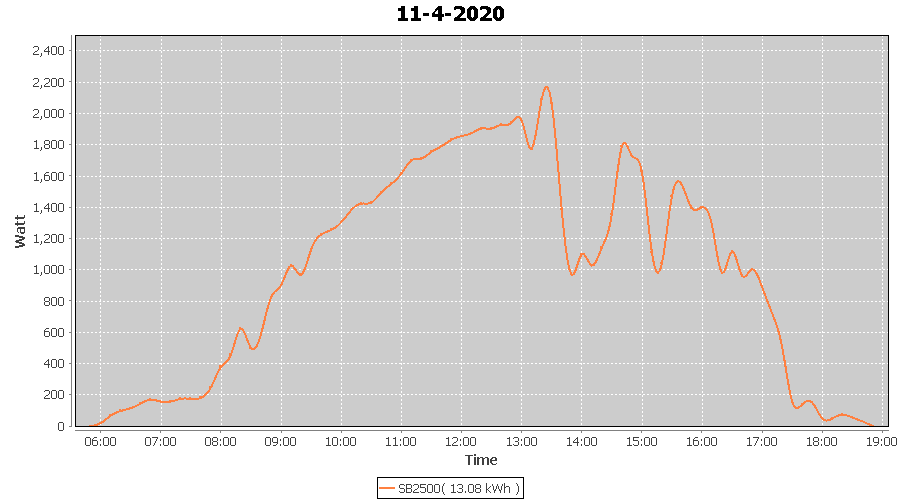 | 11-4-2020 | kWh | W/Wp | 13.08 | 2500 | 5.2 | 6.05 | £ 7.45 | 4.0 | |