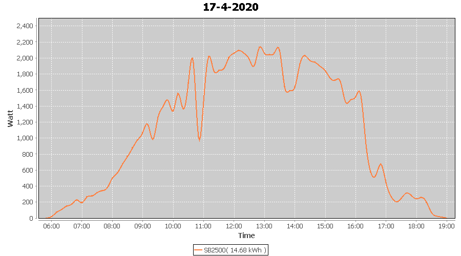 | 17-4-2020 | kWh | W/Wp | 14.68 | 2500 | 5.9 | 6.79 | £ 8.35 | 4.5 | |