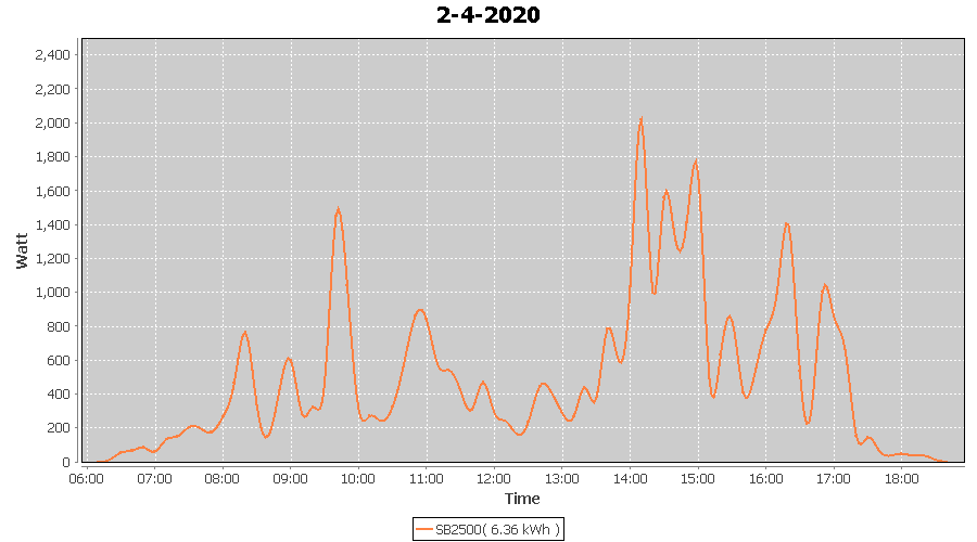 | 2-4-2020 | kWh | W/Wp | 6.36 | 2500 | 2.5 | 2.94 | £ 3.62 | 1.9 | |
