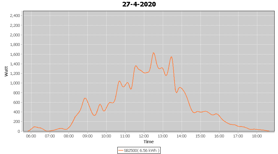 | 27-4-2020 | kWh | W/Wp | 6.56 | 2500 | 2.6 | 3.04 | £ 3.74 | 2.0 | |