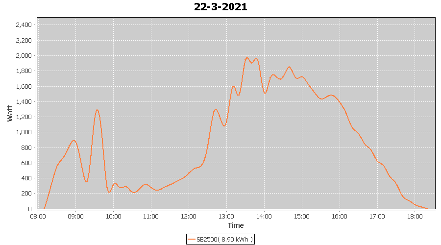 | 22-3-2021 | kWh | W/Wp | 8.90 | 2500 | 3.6 | 4.11 | £ 5.10 | 4.9 | |