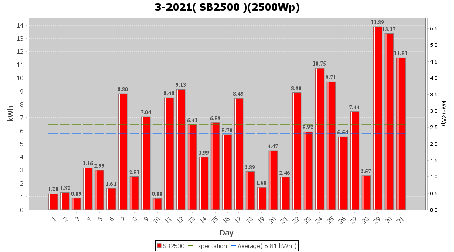 | 31-3-2021 | kWh | W/Wp | 11.51 | 2500 | 4.6 | 5.32 | £ 0.00 | 6.4 | |