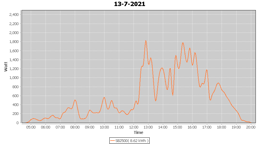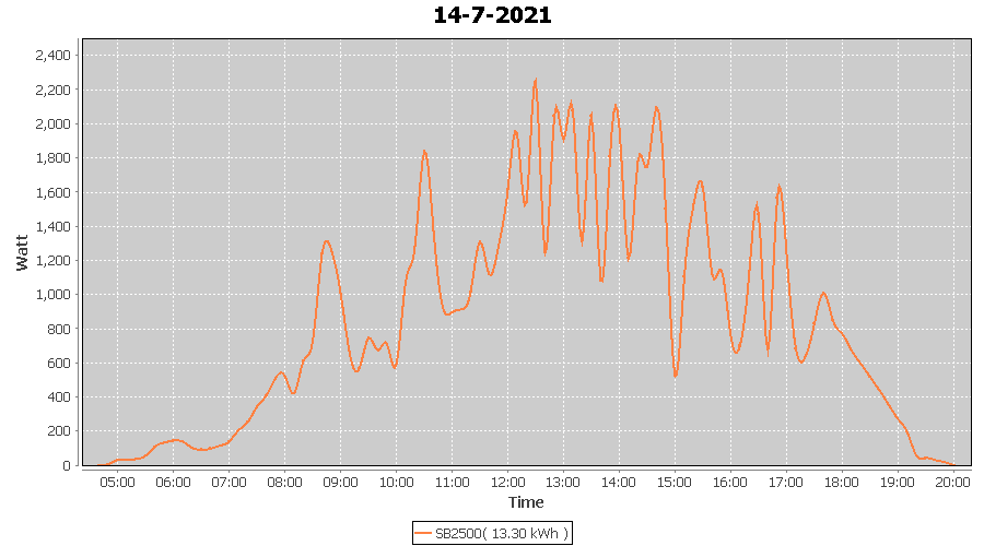 | 14-7-2021 | kWh | W/Wp | 13.30 | 2500 | 5.3 | 6.15 | £ 7.72 | 4.1 | |