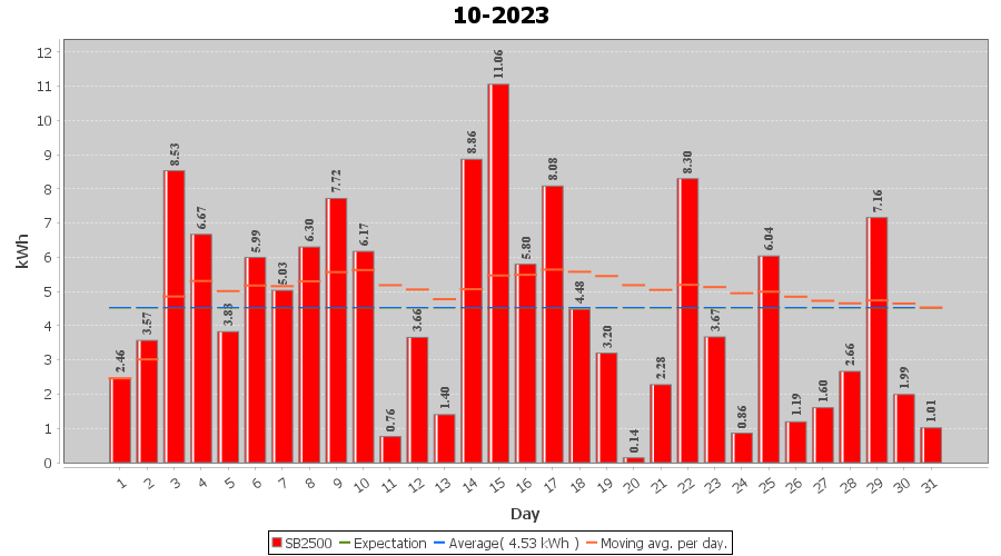 | 15-10-2023 | kWh | W/Wp | 11.06 | 2500 | 4.4 | 5.11 | £ 7.82 | 7.9 | |