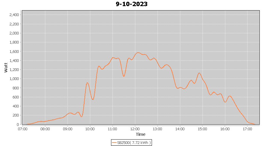 | 9-10-2023 | kWh | W/Wp | 7.72 | 2500 | 3.1 | 3.57 | £ 5.46 | 5.5 | |