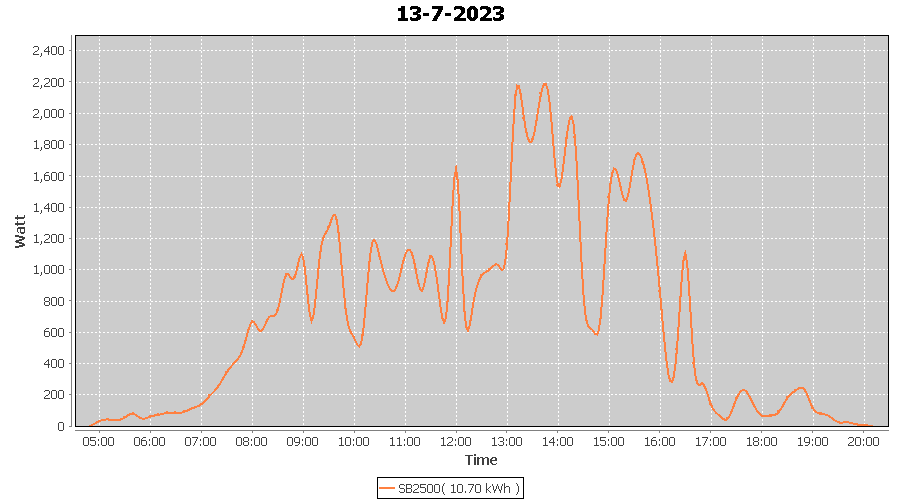 | 13-7-2023 | kWh | W/Wp | 10.70 | 2500 | 4.3 | 4.95 | £ 7.56 | 3.7 | |