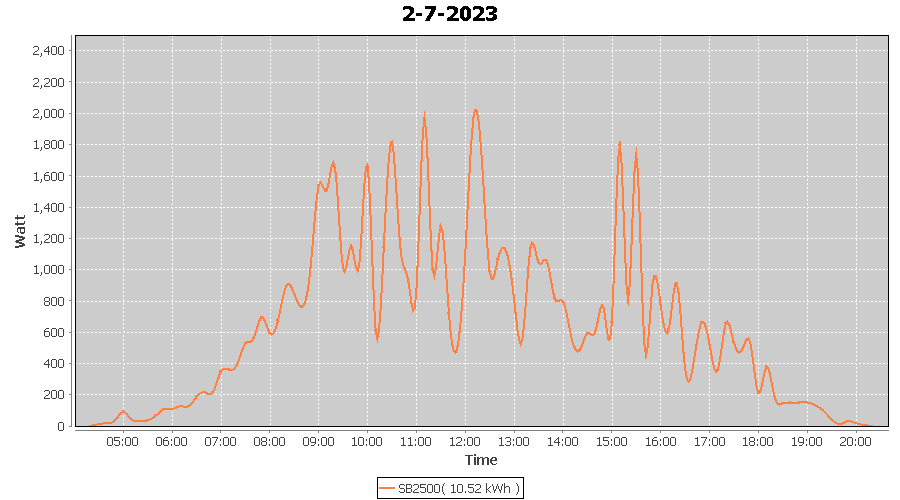 | 2-7-2023 | kWh | W/Wp | 10.52 | 2500 | 4.2 | 4.87 | £ 7.44 | 3.6 | |