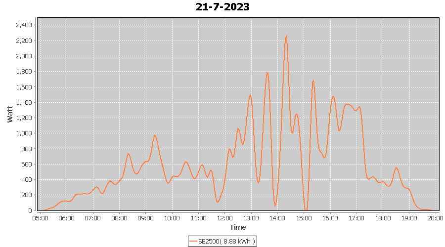 | 21-7-2023 | kWh | W/Wp | 8.88 | 2500 | 3.6 | 4.11 | £ 6.28 | 3.1 | |