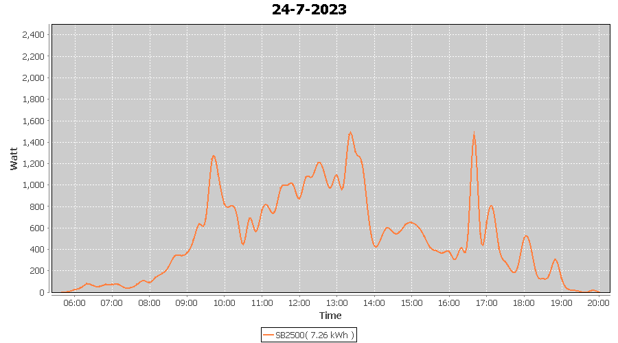 | 24-7-2023 | kWh | W/Wp | 7.26 | 2500 | 2.9 | 3.36 | £ 5.13 | 2.5 | |