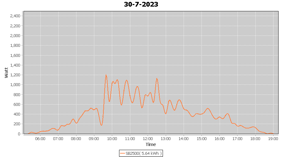 | 30-7-2023 | kWh | W/Wp | 5.64 | 2500 | 2.3 | 2.61 | £ 3.98 | 1.9 | |