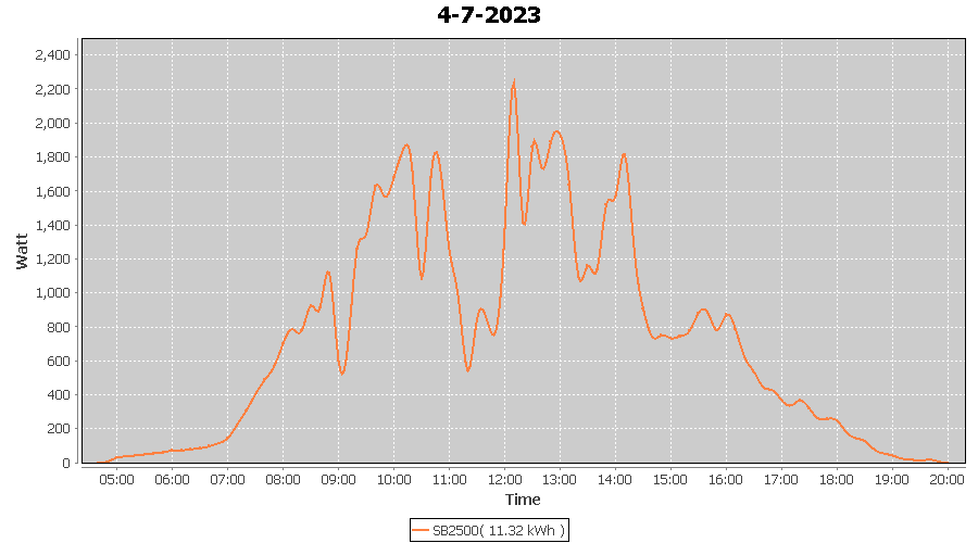 | 23-7-2023 | kWh | W/Wp | 9.55 | 2500 | 3.8 | 4.42 | £ 6.75 | 3.3 | |