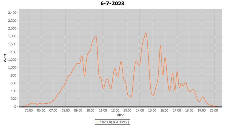 | 6-7-2023 | kWh | W/Wp | 9.90 | 2500 | 4.0 | 4.58 | £ 7.00 | 3.4 | |