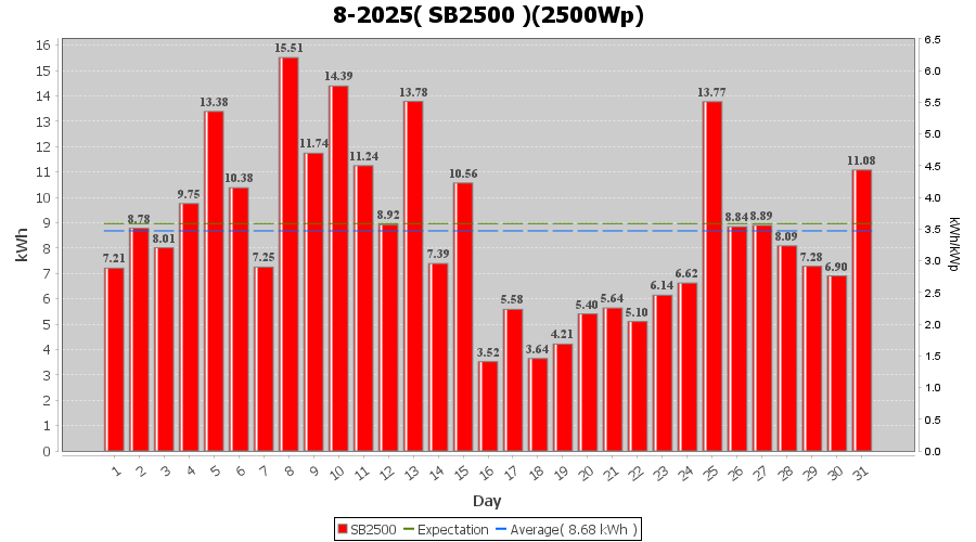 | 31-8-2025 | kWh | W/Wp | 11.08 | 2500 | 4.4 | 5.12 | £ 8.53 | 4.1 | |