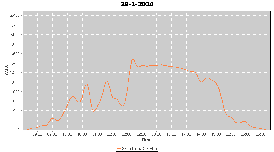 | 28-1-2026 | kWh | W/Wp | 5.72 | 2500 | 2.3 | 2.64 | £ 4.40 | 8.9 | |
