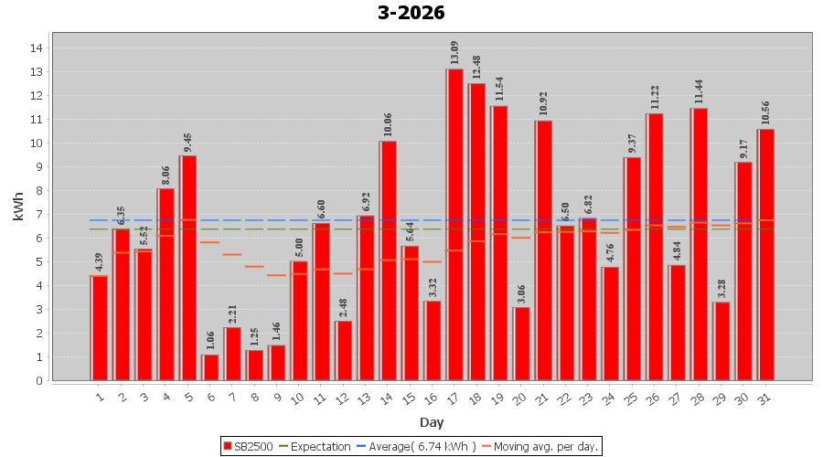 | 21-3-2026 | kWh | W/Wp | 10.92 | 2500 | 4.4 | 5.05 | £ 8.41 | 5.2 | |