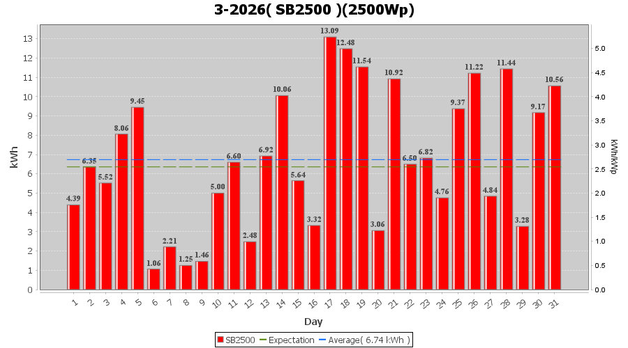 | 17-3-2026 | kWh | W/Wp | 13.09 | 2500 | 5.2 | 6.06 | £ 10.08 | 6.3 | |